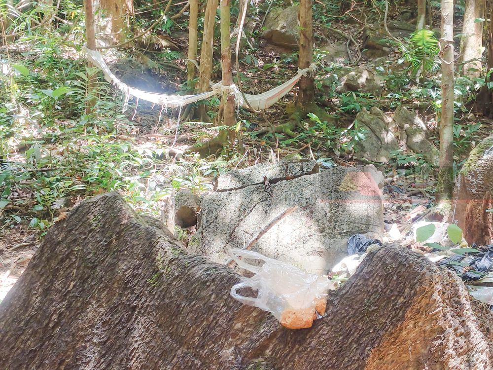 Plastik sisa makanan yang ditinggalkan di satu kawasan yang menjadi laluan penyeludup di Wang Kelian, Padang Besar pada Julai lalu.