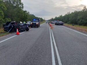 Kemalangan maut meragut dua nyawa di Kilometer 45.6, Lebuhraya Senai–Desaru (E22) awal pagi tadiSementara itu, Ketua Polis Daerah Seri Alam, Asisten Komisioner Mohd. Sohaimi Ishak berkata, kemalangan itu turut meragut nyawa pemandu kereta jenis Proton Wira, Yen Jian Yao, 19, manakala dua penumpang kereta itu, Angel Loo An Qi, 15, dan seorang lagi yang belum dikenal pasti identiti cedera parah di bahagian kepala.