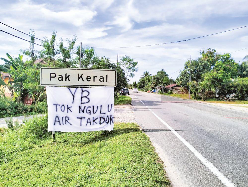 TUMPAT – Tertekan dengan gangguan bekalan air bersih sejak dua bulan lalu menyebabkan penduduk Kampung Pak Keral di sini, memasang kain rentang sebagai tanda protes. Tinjauan mendapati sebanyak lima kain rentang digantung di sepanjang jalan termasuk di laluan masuk Masjid Mukim Pak Keral. Seorang penduduk, Nor Hayati Yaakob, 49, berkata, dia menyedari kain rentang itu dipasang sejak kelmarin, namun tidak mengetahui individu yang bertanggungjawab berbuat demikian. Katanya, masalah gangguan air sudah berlarutan selama lebih dua bulan sebelum terputus sejak seminggu……