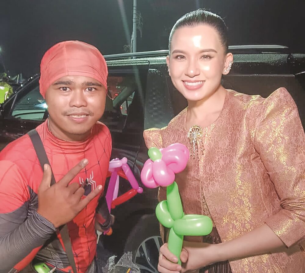 Mohd. Khairul bergambar bersama penyanyi tempatan, Suki Low.“Dua hari saya menangis, tidak tahu macam mana nak jelaskan kepada tunang, tetapi dia bagi semangat dan sanggup tunggu. Pernah terlintas untuk membuat pinjaman wang, tapi saya fikir lebih baik berusaha sendiri, jadi niat itu terbantut,” ujarnya.